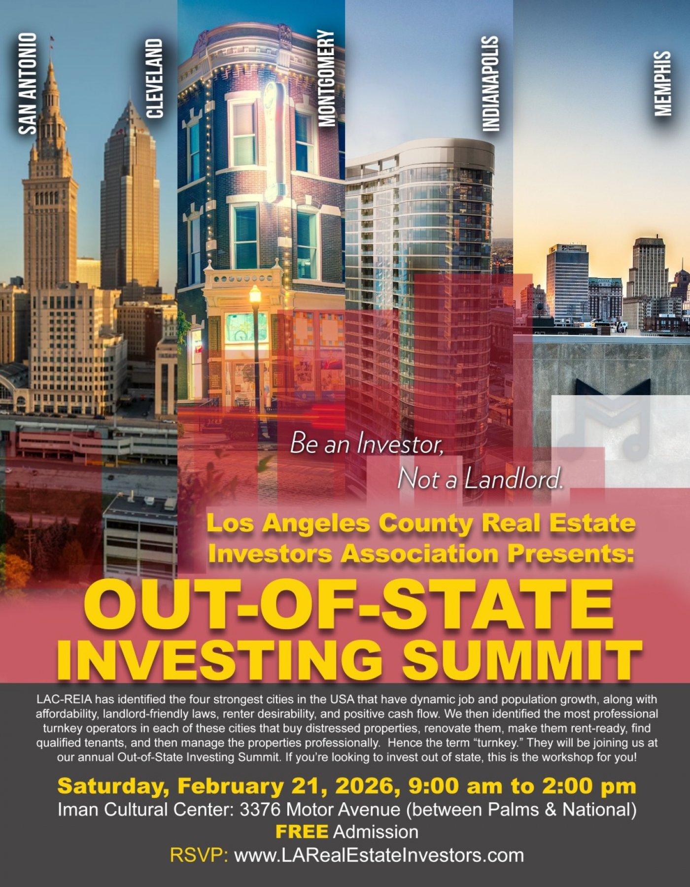 4th Annual Out-of-State Investing Summit. If you’re into “buy and hold” strategies, then the smartest thing you can do right now is to buy out-of-state. After all, why buy one house in Los Angeles for $800,000 (with negative cash flow), when you can buy at least eight $100,000 houses in out-of-state cities (with positive cash flow). But which cities?