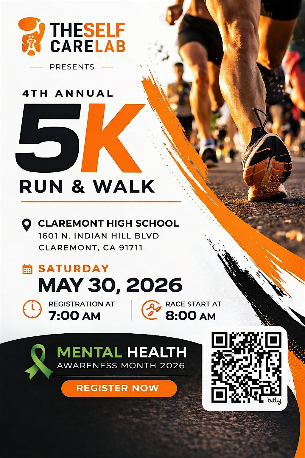 Get ready to lace up your sneakers and support a great cause and fundraiser at Claremont High School on May 30, 2026 at 7:00 AM (Pacific Time). Whether you're running or walking, this fun 5K is all about raising awareness for mental health in a relaxed, friendly atmosphere. Bring your friends, enjoy the day, and make a difference together. Don’t miss out on the chance to be part of something meaningful and energizing!