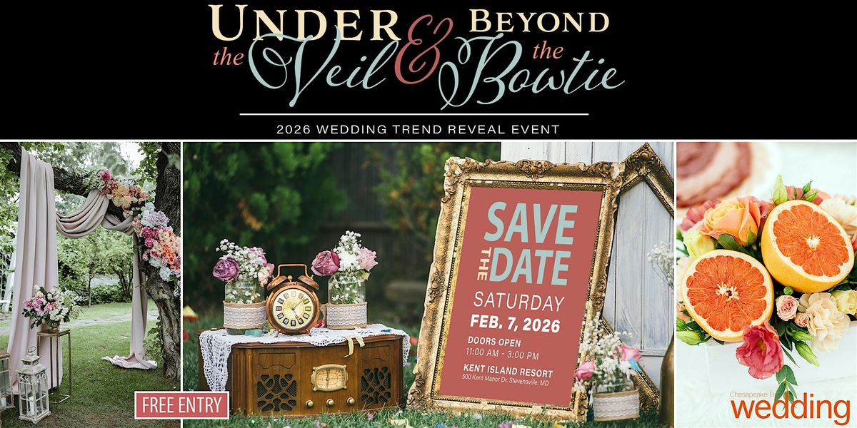 Walk through the Farmstead of Kent Island Resort, meet wedding vendors, sample the delicious brunch, view the 2026 trends in our complete wedding sets, showcasing our vendors, and connect with vendors during Chesapeake Bay Wedding Magazine's 4th Annual Under the Veil & Beyond the Bowtie Trend Reveal Event! No matter what stage of the wedding or event planning process you are in, Under the Veil is your resource to create the day of your dreams!