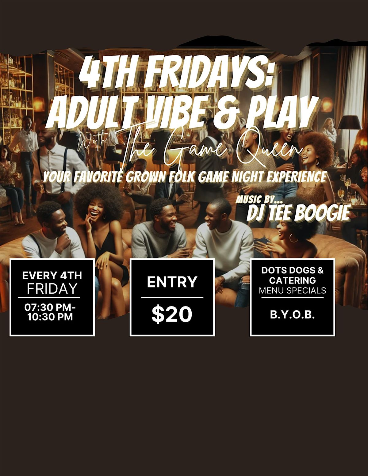 Step into an elevated night of grown folk fun, games, and good vibes! Hosted by The Game Queen, this monthly experience is where community, laughter, and connection come together for the mature and social crowd.