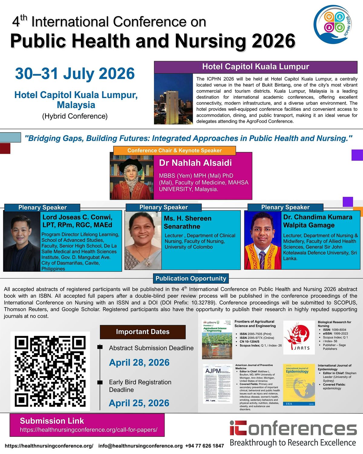 Thank you for joining us on this exciting journey. We look forward to welcoming you to the 4th International Conference on Public Health and Nursing 2026!