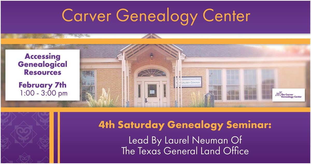 Join us on Saturday, February 7, 2026 for another wonderful 4th Saturday Genealogy Seminar. Laurel Neuman of the Texas General Land Office will provide an overview of the types of records in the GLO’s archival collection, as well as a walkthrough on how to access our records and do genealogy research online. Get ready for a wonderful experience!