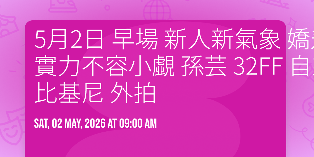 Fri, 01 May at 02:00 pm 5/1午場邱愛晨性感時裝外拍(滿團可候補)