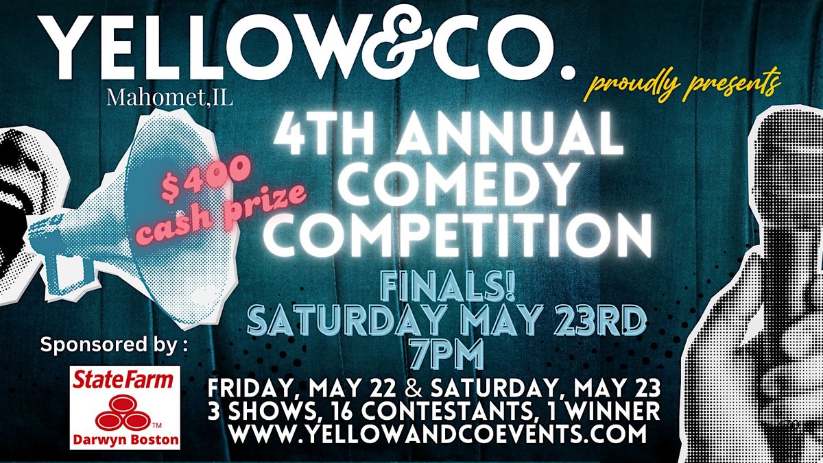 16 comedians will compete for 1st and 2nd place and cash prizes and a feature spot for an upcoming Comedy Show at Yellow & Co.