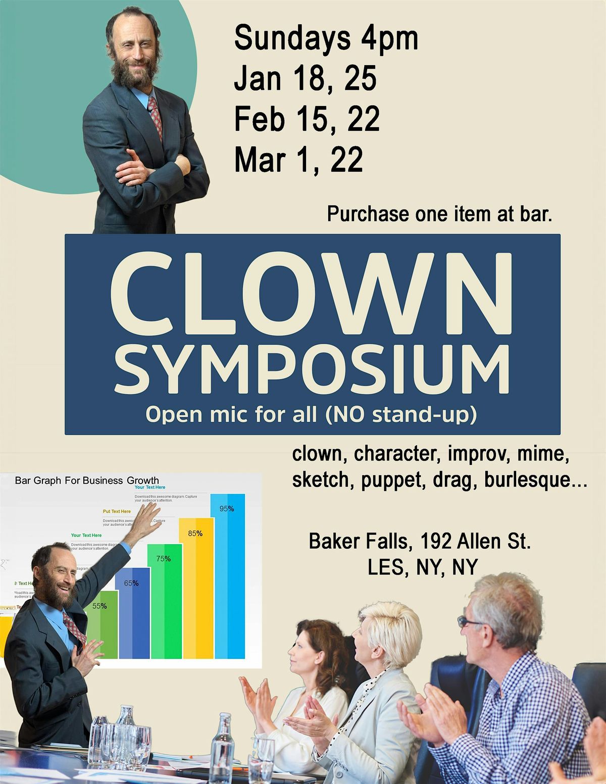 The Clown Symposium - Open mic for all (NO stand-up) clown, character, improv, mime, sketch, puppet, drag, burlesque....