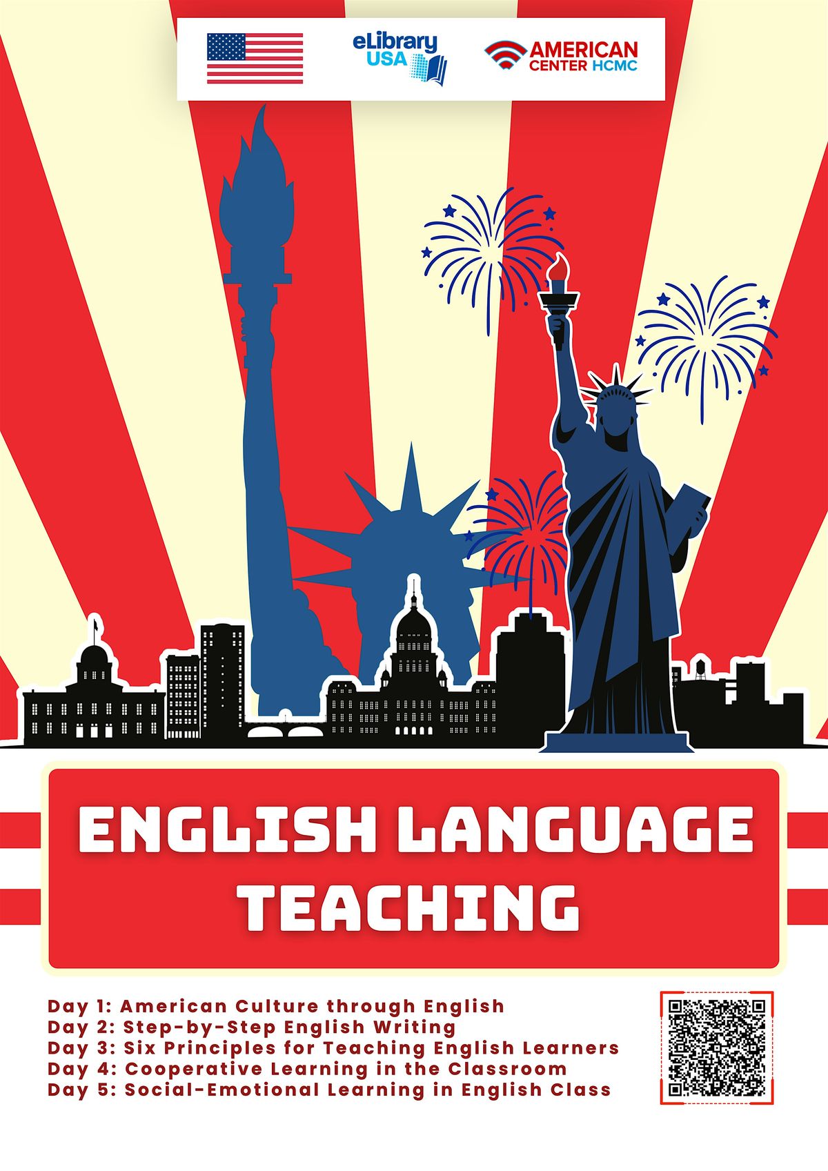 Join us for a 5-day Scavenger Hunt at the American Center Library, where you’ll explore key topics in English Language Teaching using eLibraryUSA. Each day focuses on a different theme from understanding American culture through English to effective classroom strategies. Use your eLibraryUSA account to discover reading materials, then complete a short quiz to test your knowledge. (Note: You must have an active eLibraryUSA account to participate.)