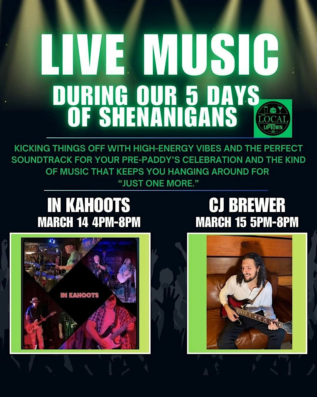 St. Paddy’s week at The Local Uptown isn’t just green beer and corned beef — we’re bringing the sound too!