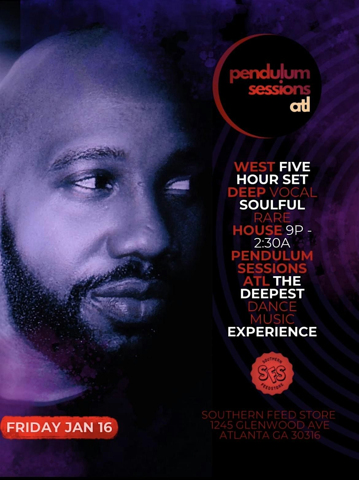 ** FIVE HOUR DEEP HOUSE SET WITH ATL DEEP HOUSE DJ + PRODUCER WEST - PENDULUM SESSIONS ATL RESIDENT DJ** FREE ENTRY WITH RSVP