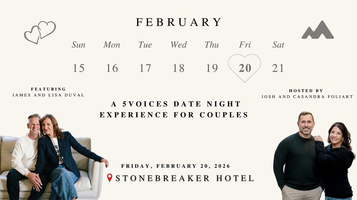 Join us for an intentional, meaningful date night experience for couples built around the 5 Voices framework by GiANT Worldwide—a powerful tool designed to help you better understand yourself, your spouse, and the way you communicate together.