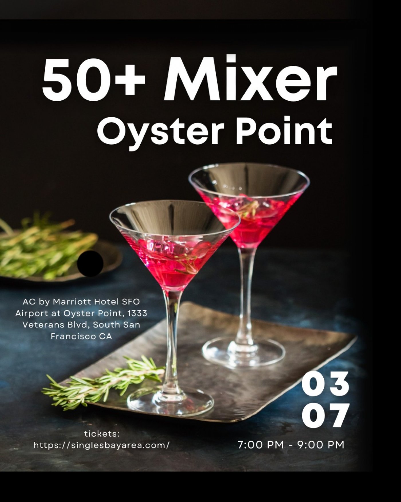 LOCATION: AC by Marriott Hotel SFO Airport at Oyster Point, 1333 Veterans Blvd, South San Francisco CA. Free parking!