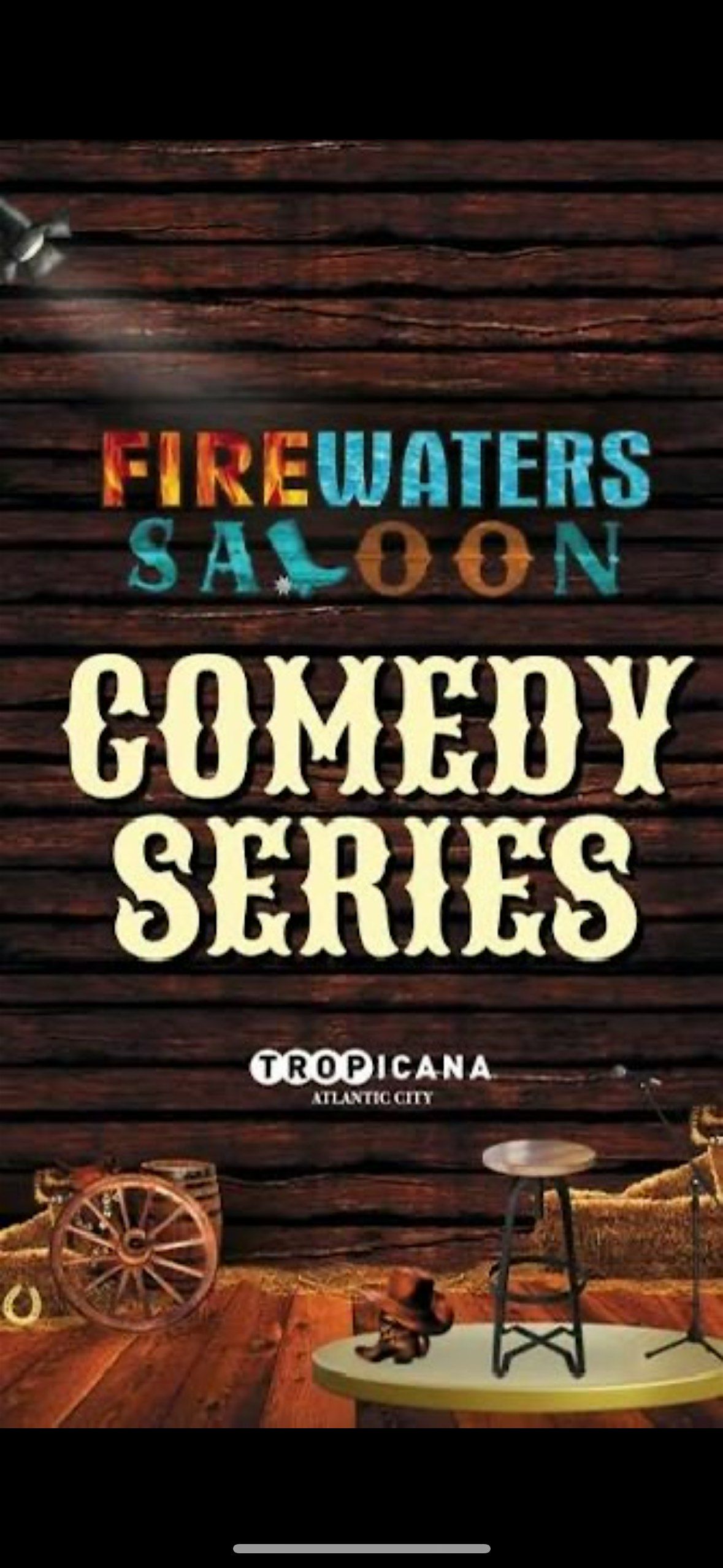 Comedy -Tropicana Casino at Firewaters Saloon. Firewaters is located in the Downstairs marketplace, down the hall from Hooters.