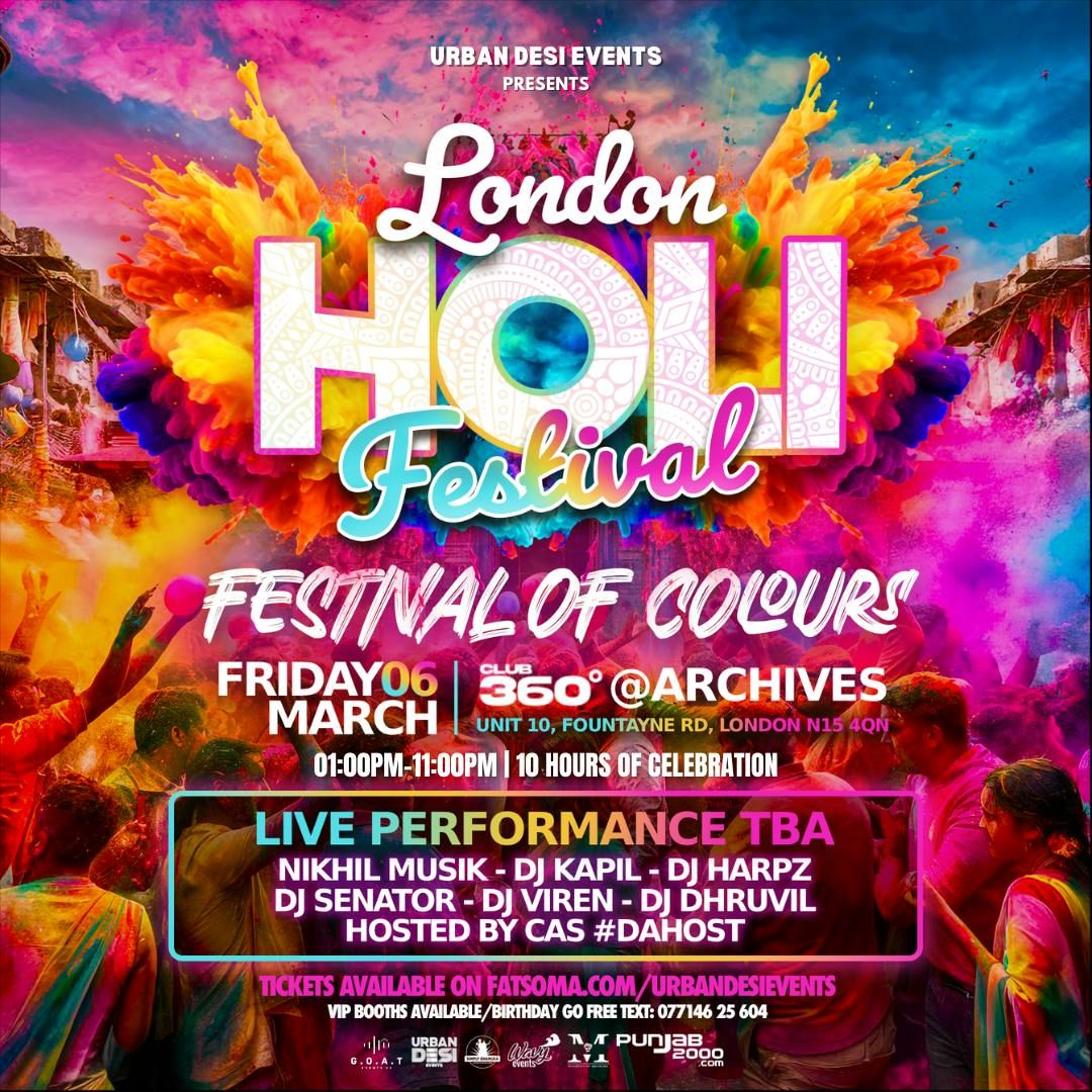 🔴🟡🔵 THE LONDON HOLI FESTIVAL 🔴🟡🔵FESTIVAL OF COLOURS 📅 - 6th MARCH | FRIDAY🕒- FESTIVAL- 1pm UNTIL 10:00PMAFTERPARTY- 10:00 PM UNTIL LATE NIGHT15 hours Holi Rave