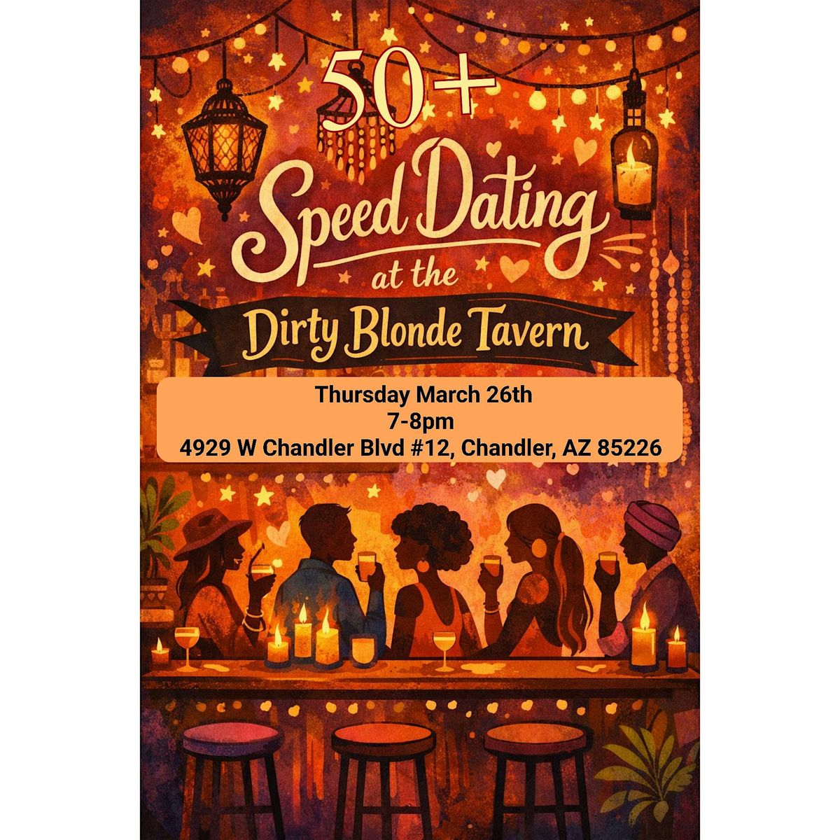 Join us for an exciting evening of speed dating designed exclusively for singles 50+ who are ready to spark meaningful conversations, genuine laughter, and maybe even something more.
