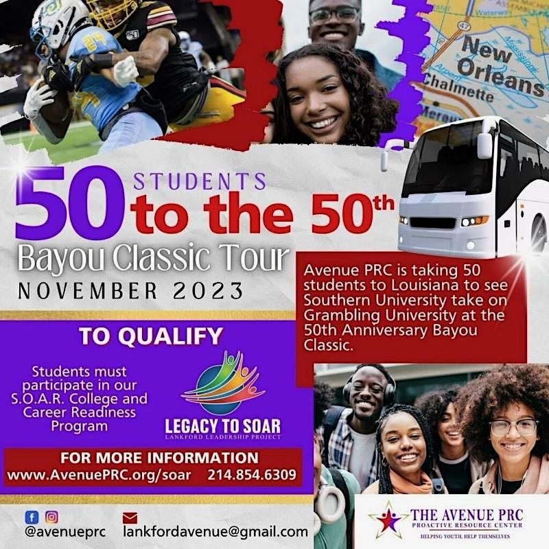 The Avenue PRC is taking 50 enrolled students to Louisiana to see Southern take on Grambling at the 50th Anniversary Bayou Classic.