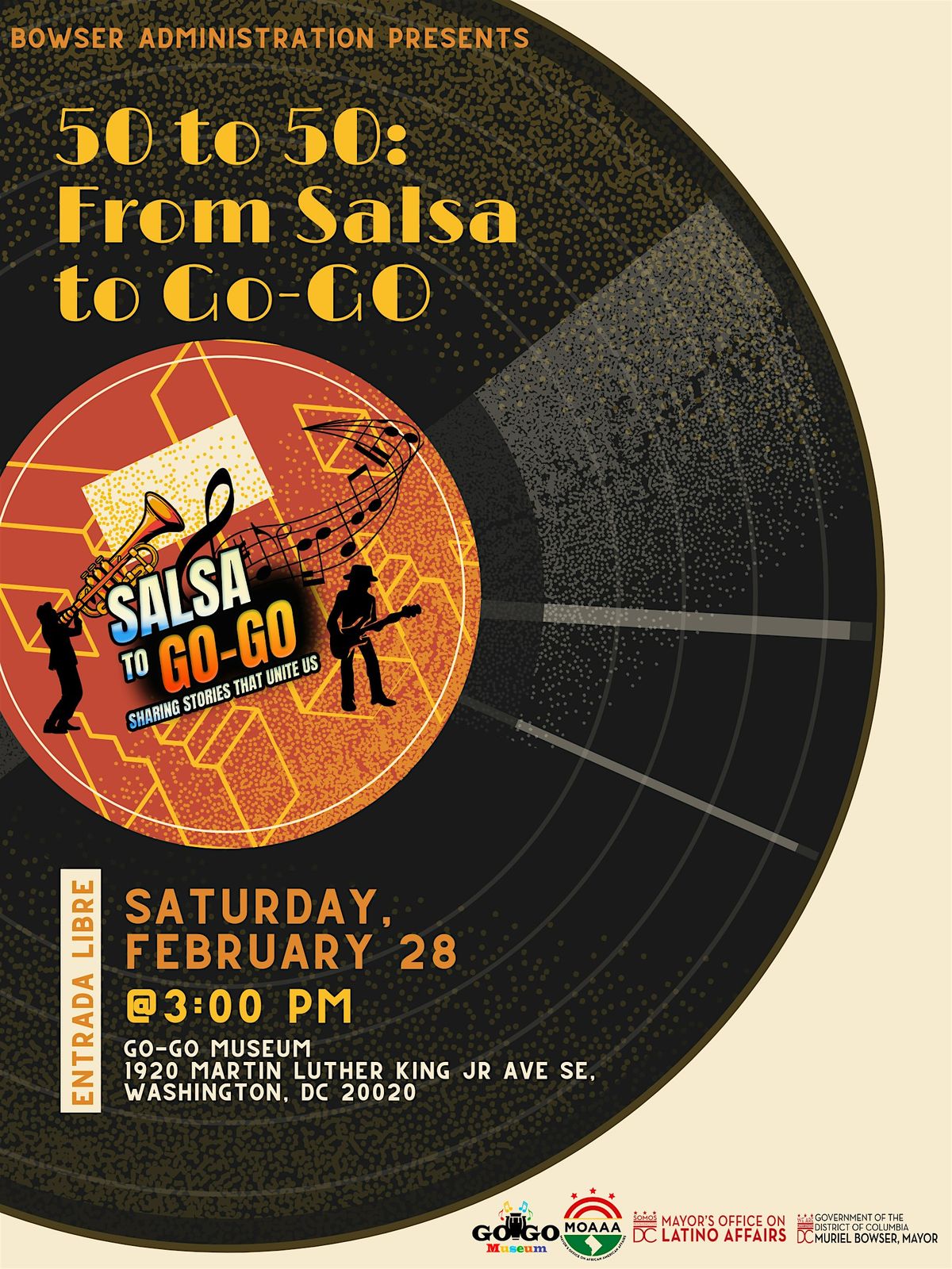 Join the Mayor's Office on Latino Affairs (MOLA) and the Mayor's Office on African American Affairs (MOAAA) for a Black History Month event celebrating 50 years of Go-Go and 50 years of service from MOLA.