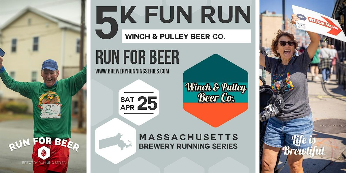 Join us for 5k-ish fun run that starts and ends at Winch & Pulley Beer Co. in Framingman! Run, walk, jog - whatever goes! This event is for all ages and fitness levels. Move at your own pace, enjoy some fresh air, and then celebrate with a locally made, cold craft beverage at the finish line! 🎉