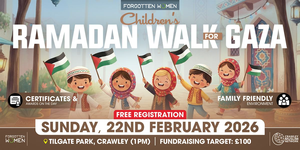 oin us on Sunday, 22nd February 2026, from 1:00 PM – 3:00 PM, for a meaningful 5K Gaza Ramadan Walk for Children at Tilgate Park, Crawley, hosted by Forgotten Women.