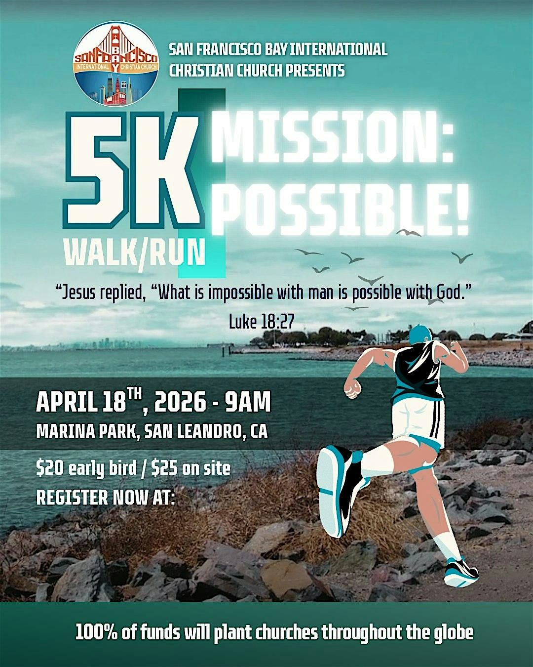 The San Francisco Bay International Christian Church (SFBICC) is excited to host a 5K Run/Walk in San Leandro, bringing the community together for a meaningful cause. This event is more than just a race! It’s an opportunity to make a lasting impact. All funds raised will go directly toward planting new churches, helping spread faith, build supportive communities, and reach people with hope across new cities and neighborhoods.