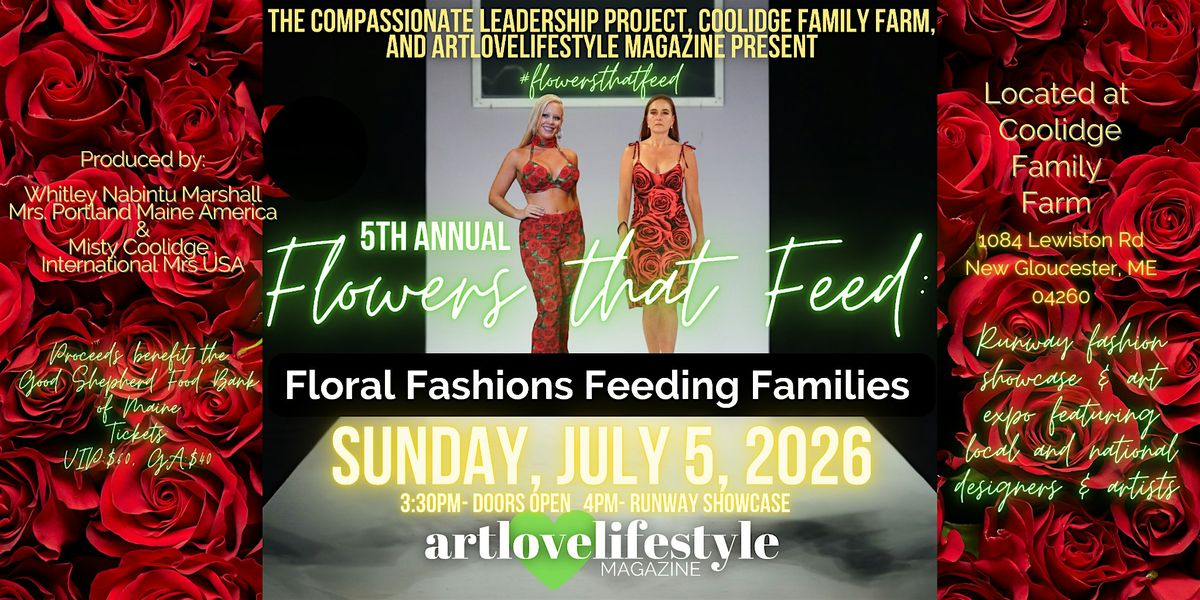 Join Artlovelifestyle Magazine, the Compassionate Leadership Project and Coolidge Family Farm on Saturday, July 5th at 3:30pm for our 5th Annual Flowers that Feed Art and Fashion Showcase benefitting the Good Shepherd Food Bank!