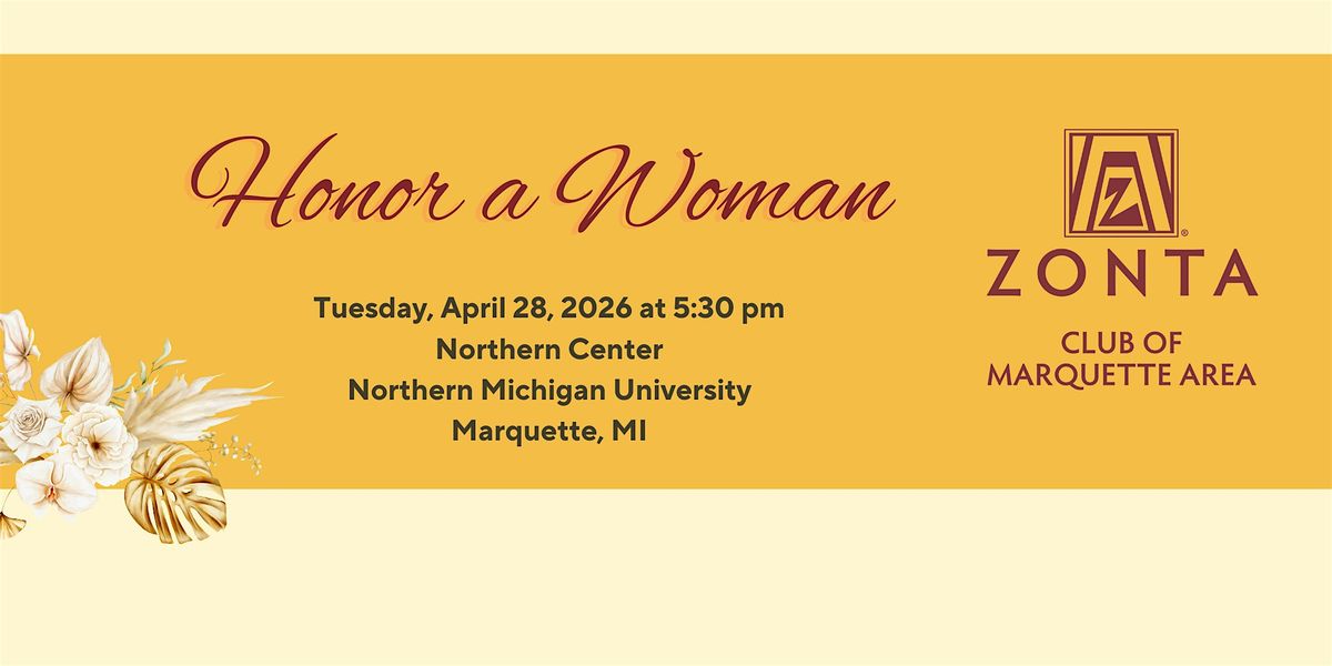 The 5th Annual Honor a Woman event, hosted by the Zonta Club of Marquette Area, is an evening dedicated to celebrating and uplifting women who make a meaningful impact in our community. Taking place on Tuesday, April 28, 2026 at 5:30 PM at the Northern Center at Northern Michigan University, the event brings together community members, advocates, and leaders to recognize the power of service, leadership, and compassion.