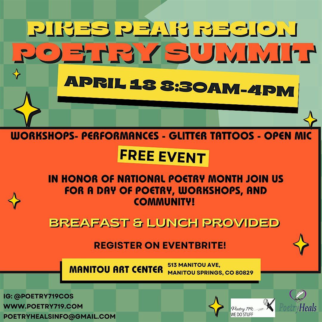 This year’s Pikes Peak Poetry Summit is on Sat., April 18 from 8:30 a.m. - 4:00 p.m. at The Manitou Art Center (513 Manitou Avenue, Manitou Springs, CO 80829)