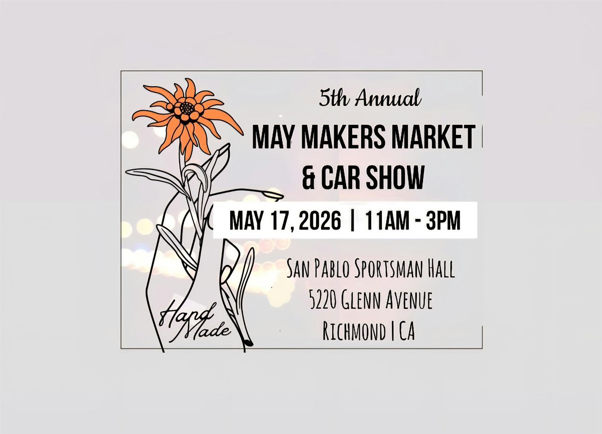 Join us for our 5th Annual Makers Market at the San Pablo Sportsman Hall. Shop 25 makers & check out the Sportsman Club's first car show.About this Event