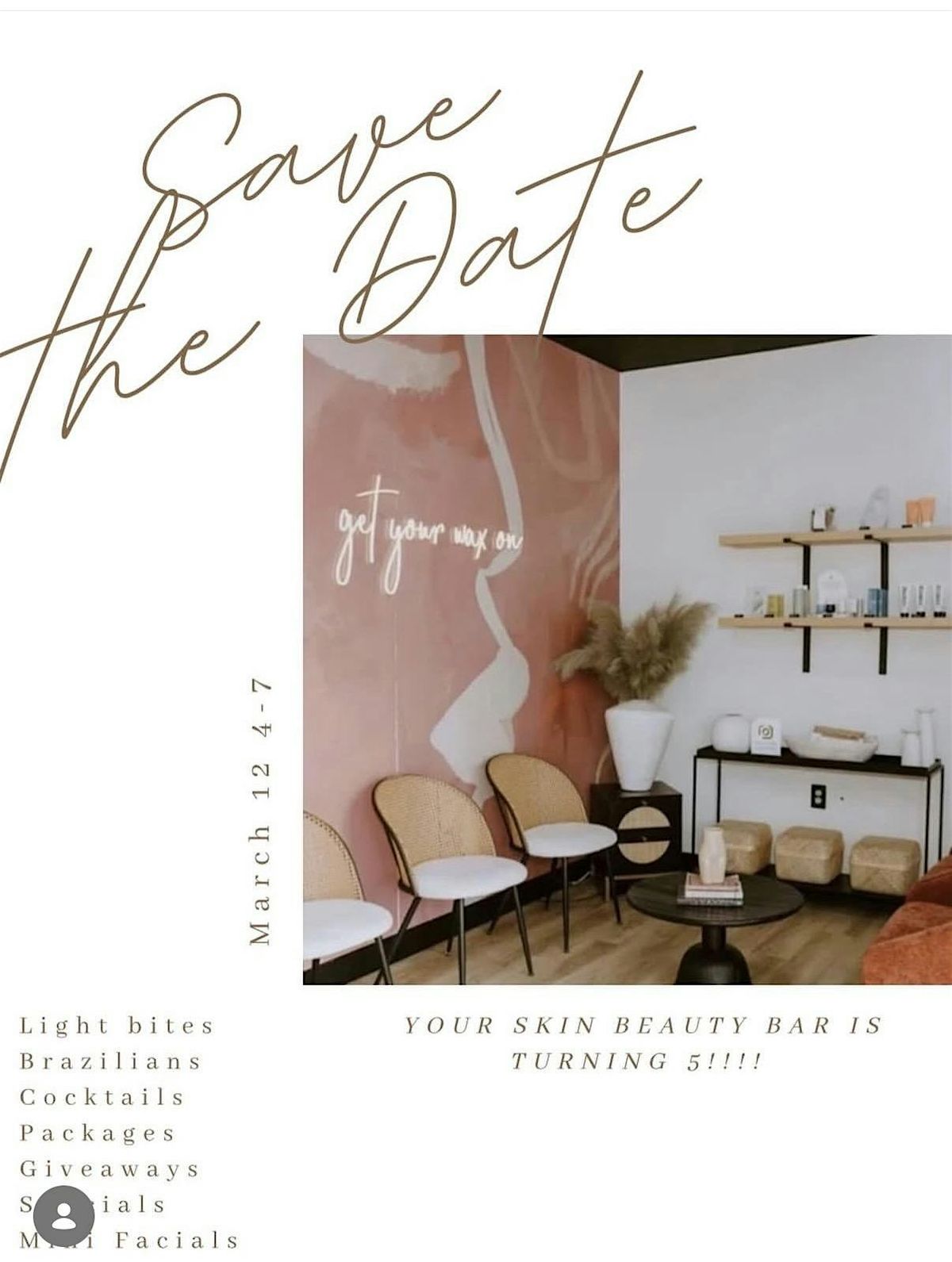 Join us as Your Skin Beauty Bar celebrates 5 years with a special anniversary event filled with beauty, community, and celebration. Guests can enjoy light bites, cocktails, exclusive specials, mini facials, Brazilians, package deals, and exciting giveaways throughout the evening. Itβs the perfect opportunity to connect, relax, and celebrate five amazing years of helping clients look and feel their best.