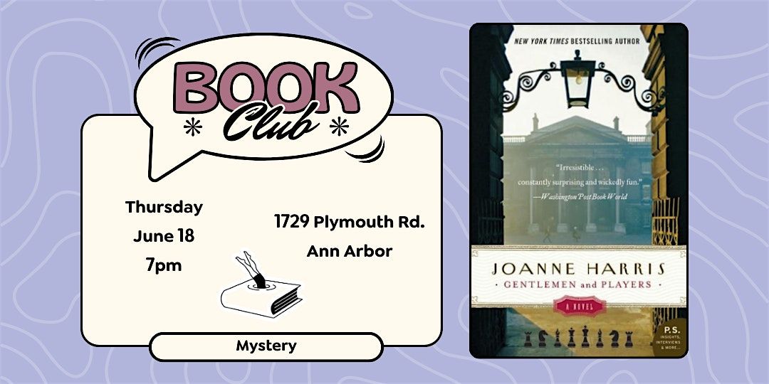 For our next mystery book club, we'll discuss Gentlemen and Players by Joanne Harris. We're meeting on Thursday June 18th from 7pm to 8pm.