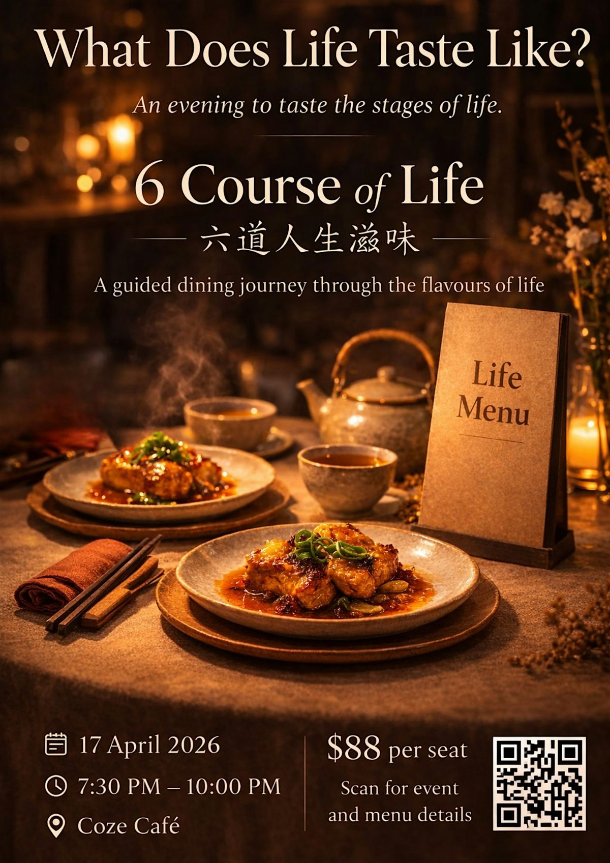 Set in a warm and intimate setting at Coze Café, this evening invites you to slow down, enjoy a thoughtfully curated meal, and share meaningful conversations around the table.Because sometimes, the best conversations about life happen over dinner.