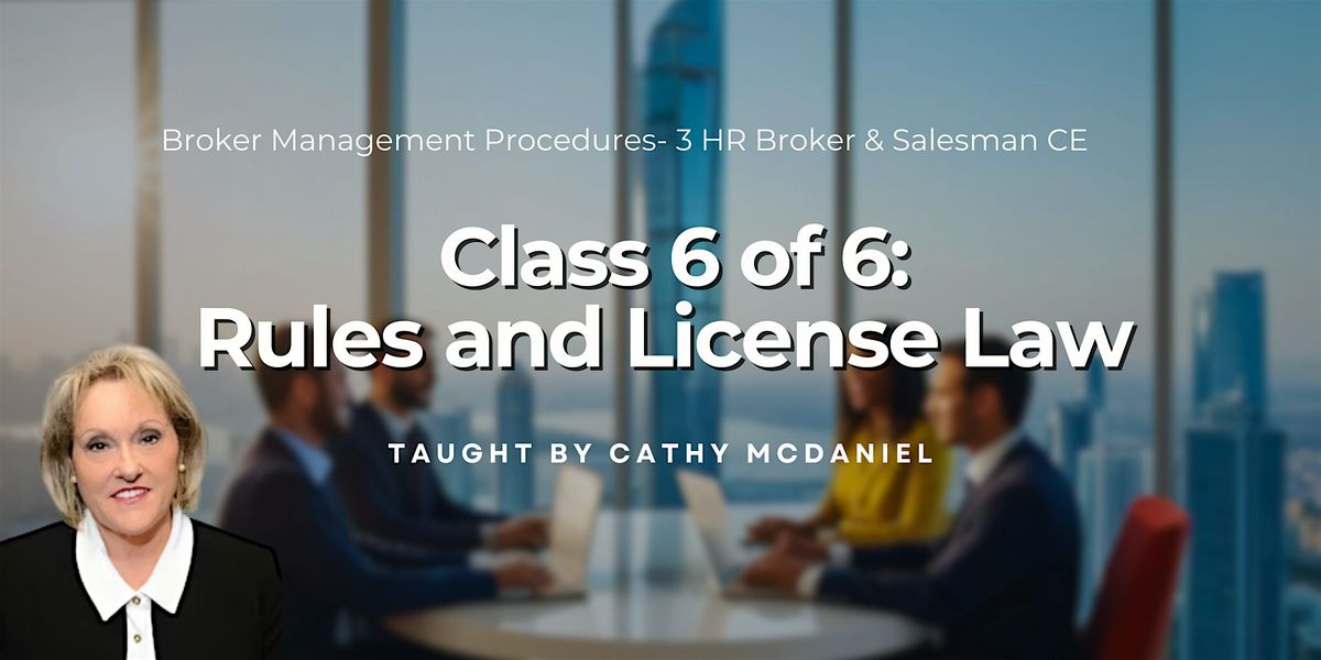 6 of 6 Broker Management Procedures – 3 Hour Broker and Salesman CE “Rules and License Law”About this Event