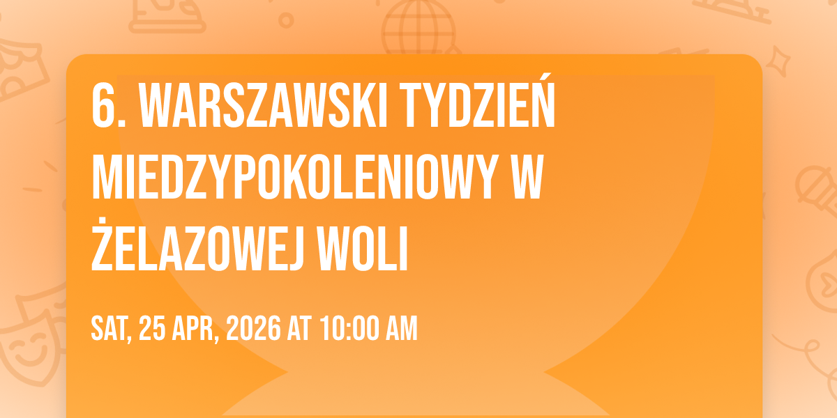6. Warszawski Tydzień Międzypokoleniowy w Żelazowej Woli "Od źródeł Chopina ku współczesnym interpretacjom" – Wyjazd do Żelazowej Woli W sobotę 25.04 zapraszamy na wspólny wyjazd do Żelazowej Woli, łączący sztukę, muzykę i film. W programie m.in. oprowadzania po wystawie „Zbychorski Koshio Kooperacje”, oprowadzanie po Domu Urodzenia Fryderyka Chopina połączone z recitalem oraz wieczorny pokaz filmowy. Zapewniamy także czas na spacer po parku oraz możliwość wspólnego transportu po wcześniejszych zapisach.