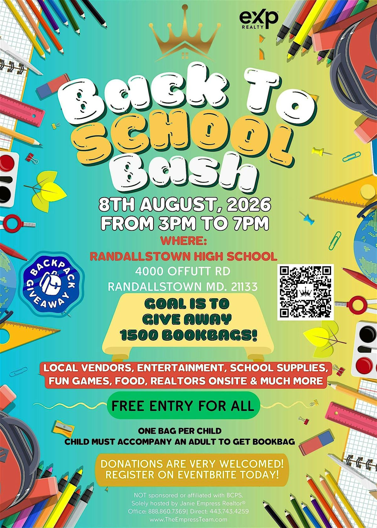 Our goal: 1,500+ bookbags filled with essential school supplies — completely FREE to local families.