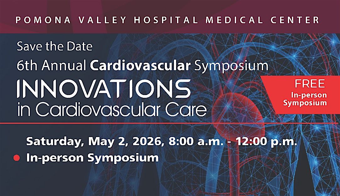 Pomona Valley Hospital Medical Center (PVHMC), an American College of Cardiology Certified Chest Pain Center, is excited to offer this FREE half-day symposium. The event will be held at Pomona Valley Hospital Medical Center in the Pitzer Auditorium.