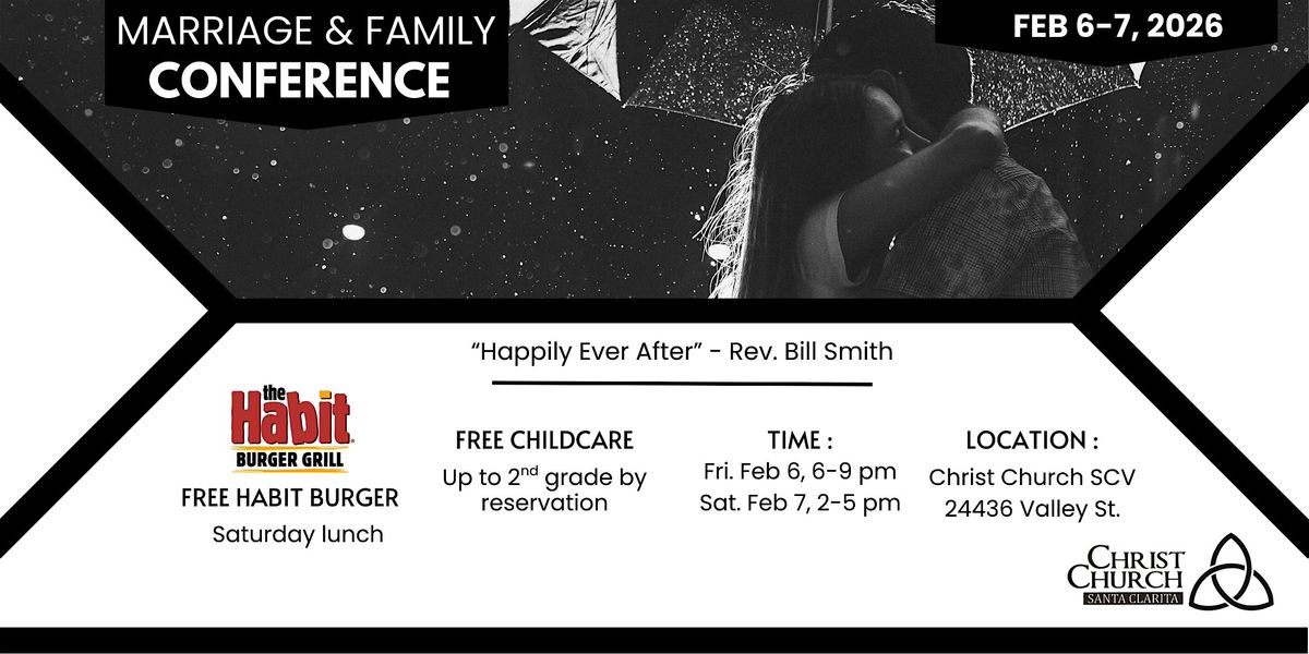 Join us for our Sixth Annual Christ Church Marriage and Family Conference! This year we are honored to hear from Rev. Bill Smith share: Happily Ever After. Here is the Schedule: