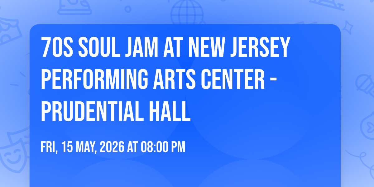 🎉 Prepare to be amazed at 70s Soul Jam at New Jersey Performing Arts Center - Prudential Hall, the most anticipated gathering of the season! 🌟 Set against the stunning backdrop of New Jersey Performing Arts Center - Prudential Hall in vibrant Newark, NJ, this event promises to redefine your expectations. 📅 Mark your calendars for May 15th, 2026 at 08:00 PM and get ready to immerse yourself in an atmosphere of wonder and excitement. ✨ From the moment you arrive, you'll be transported into a world where memories are made and stories come alive. They have crafted an experience that perfectly harmonizes entertainment, innovation, and community spirit. 🌈 Join us as we create moments that will be discussed for years!
