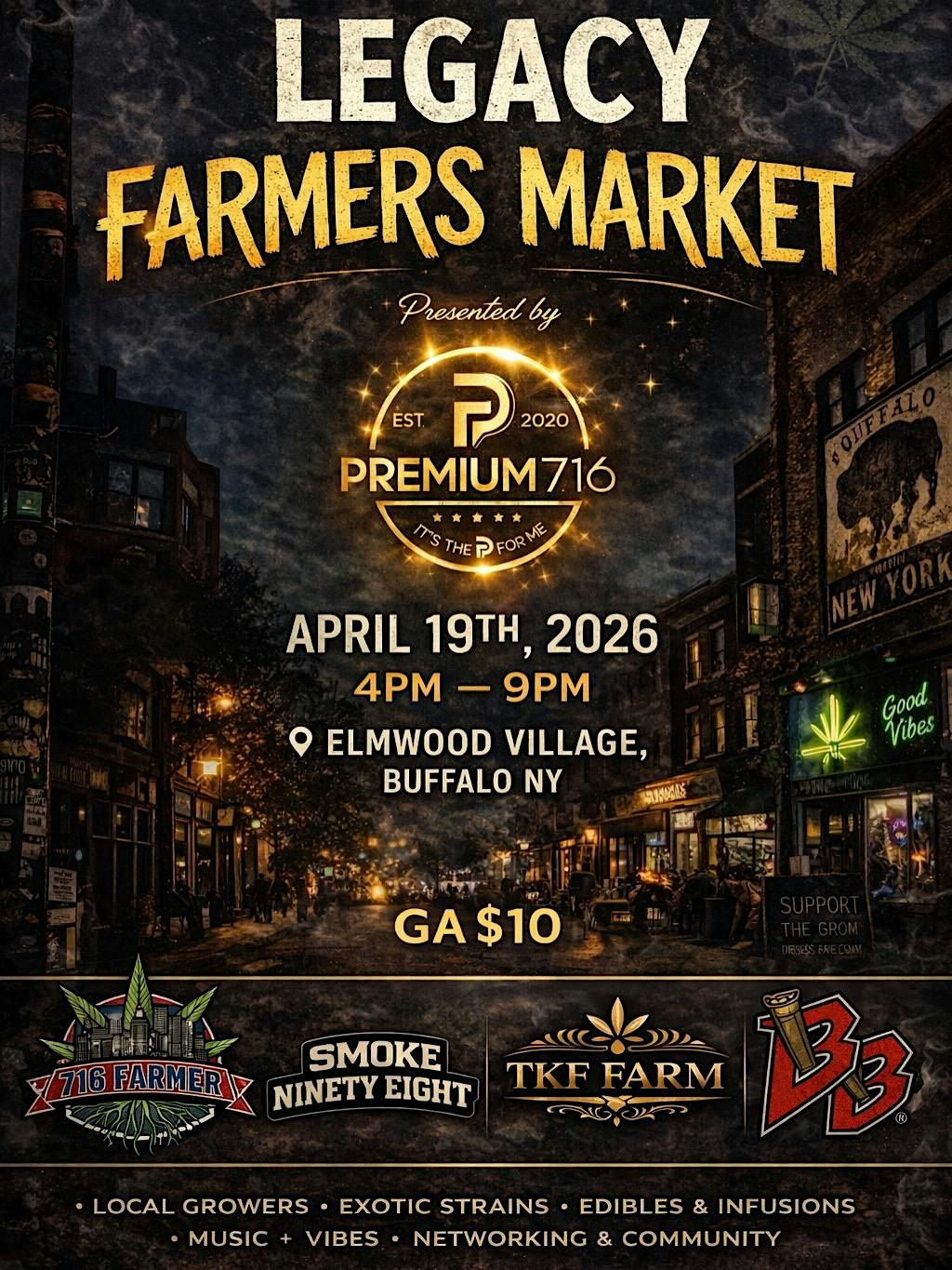 Join us, Sunday, April 19th for The Legacy Farmer's Market; Featuring brands like TKF Farms, The Blazin Buffalo, Smoke 98, and 716 Farmer