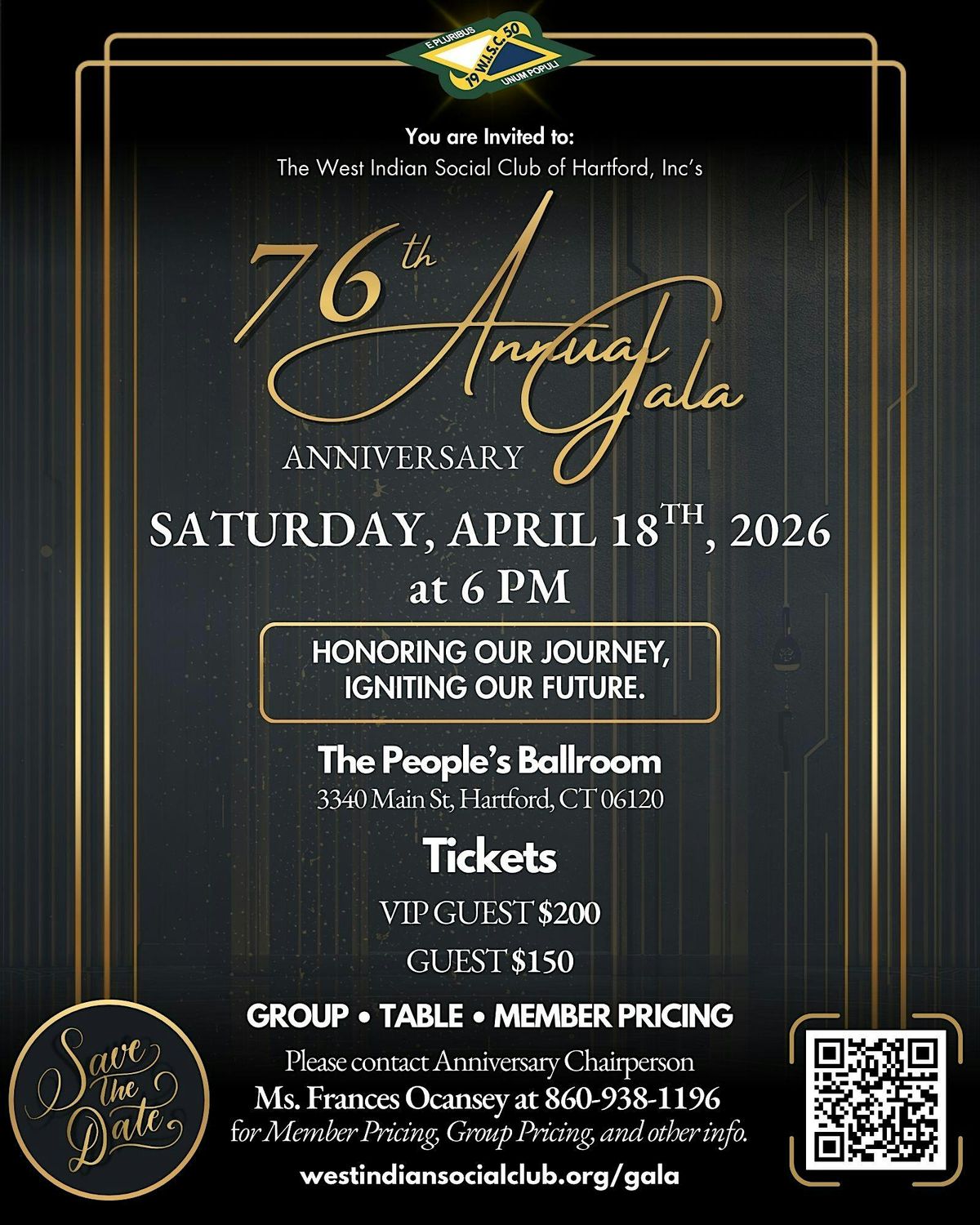 For 76 years, the West Indian Social Club of Hartford has stood as a beacon of culture, resilience, and community—a home away from home where legacies are built and heritage is celebrated. On April 18th, 2026, we invite you to be part of another significant milestone: our 76th Anniversary Gala, themed "Honoring our Journey, Igniting our Future." This is more than just a dinner; it is a powerful convergence of our storied past and the limitless potential of what lies ahead. As we gather at 6:00 PM within the historic West Indian Social Club and the elegant People’s Ballroom, we will toast to the pioneers who paved the way and the visionaries who are currently charting our next chapter.