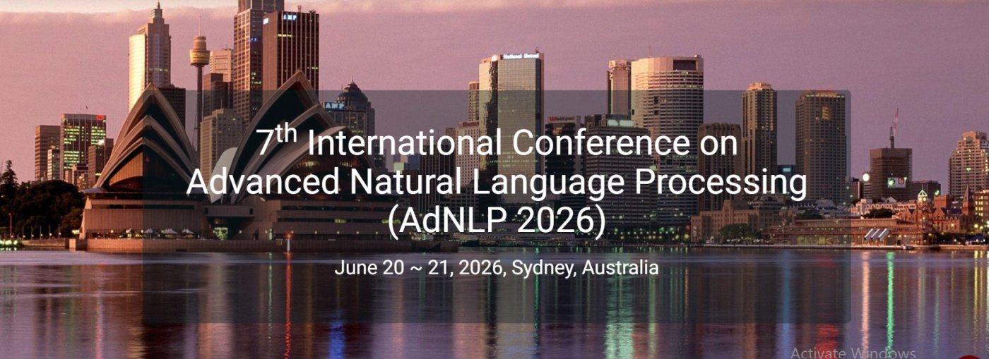 7th International Conference on Advanced Natural Language Processing (AdNLP 2026) offers a premier global platform for the exchange of insights and findings pertaining to the theory, methods, and applications of Natural Language Computing and its advancements.