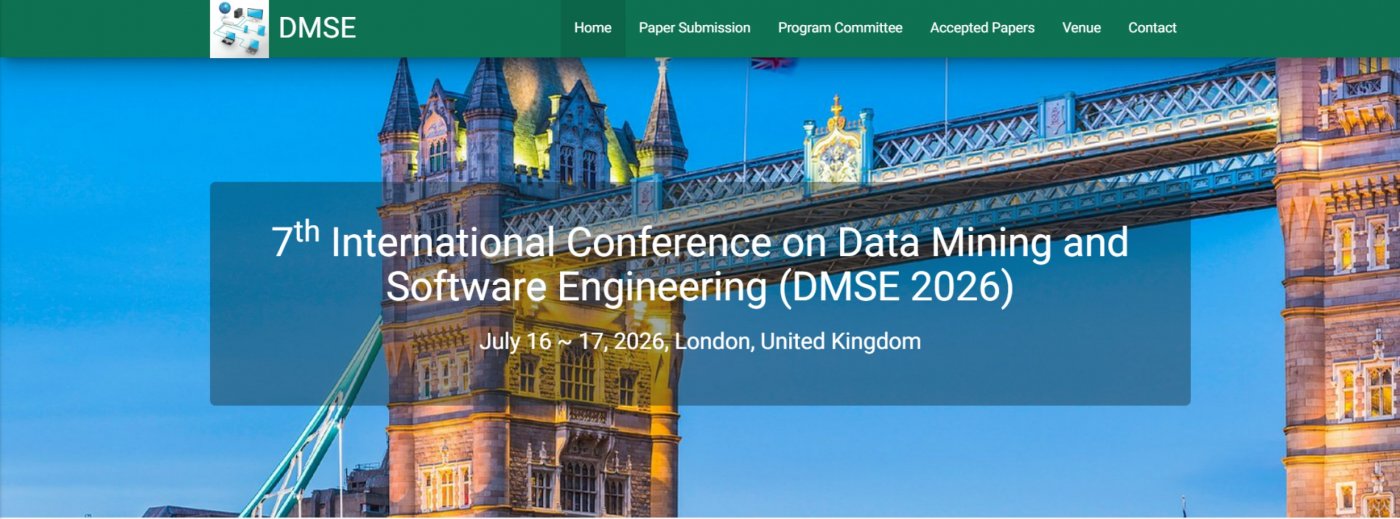 7th International Conference on Data Mining and Software Engineering (DMSE 2026)