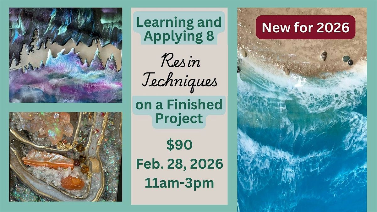 There are 8 basic techniques for pouring resin and we will try each one of them so you can decide which one(s) you are most interested in using on your finished product which will be a 12x12 cradle board wall art. You will also be keeping all your mini practice pieces as well!