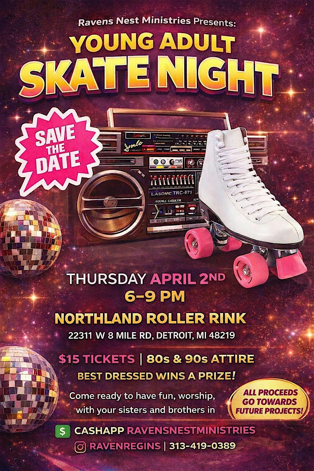 Hey there! Join us for a fun-filled night of skating paired with uplifting gospel vibes. It's the perfect chance to roll out with friends, meet new people, and enjoy some awesome music in a chill atmosphere. Whether you're a skating pro or just learning, this in-person event welcomes all young adults ready to have a blast. Lace up your skates and let's make it a night to remember!
