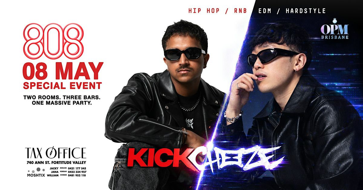 808 and OPM presents Crowd favourite @kickcheeze for the launch of our Hard dance and EDM room at @taxoffice with 2 levels, 3 bars, 8 VIP Booths - 1 MASSIVE party. Save the date Friday 8th of May.Full line up TBA!KICKCHEEZE has undeniably shaken up the Hard Dance scene and continues to cultivate a loyal following worldwide through their #4THECULTURE movement - Drawing inspirations from Vinahouse, KPOP, anime and other Asian subcultures turning classics into rave anthems.Brisbane's Biggest monthly party arrives at the Tax Office one of Fortitude valley's most exclusive and premium venues. Luxury VIP Booths, Mezzanine, and Dynamic dance floors lit up by gold moving disco balls.