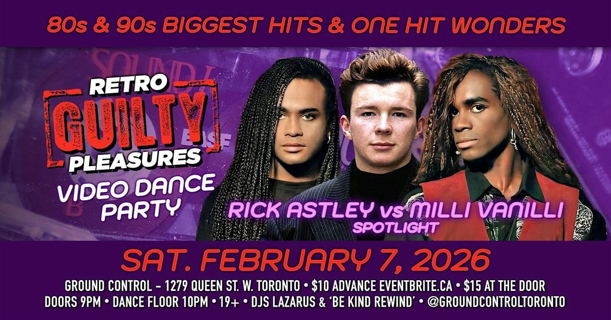 Sat Feb 7 - 80s & 90s Retro 'GUILTY' Pleasures Video Dance Party w/ Milli Vanilli vs Rick Astley Spotlight
