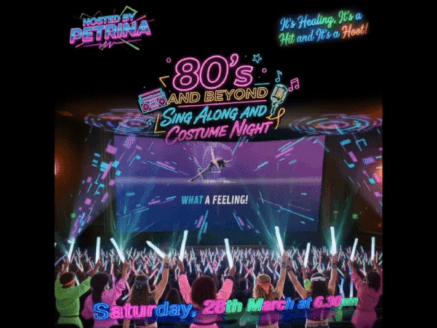 Songs from 80’s and Beyond. Fame, Dirty Dancing, Grease, Risky Business, Rocky, Footloose and so much more. AND a chance to sing on the mic with everyone singing with you. For tickets