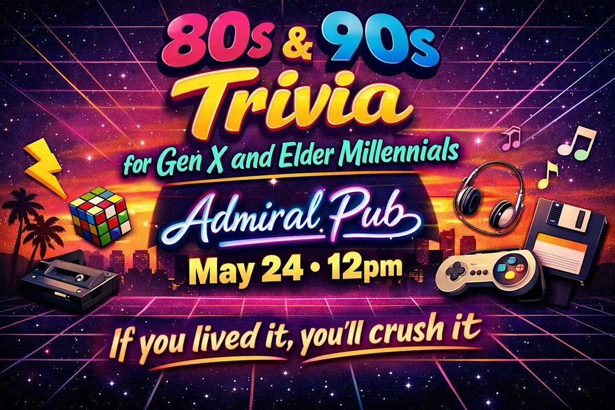 Join us on Saturday, May 24 for a special 80s & 90s Trivia built for Gen X and elder millennials who still remember the songs, the movies, and all the random pop culture moments that defined the era.