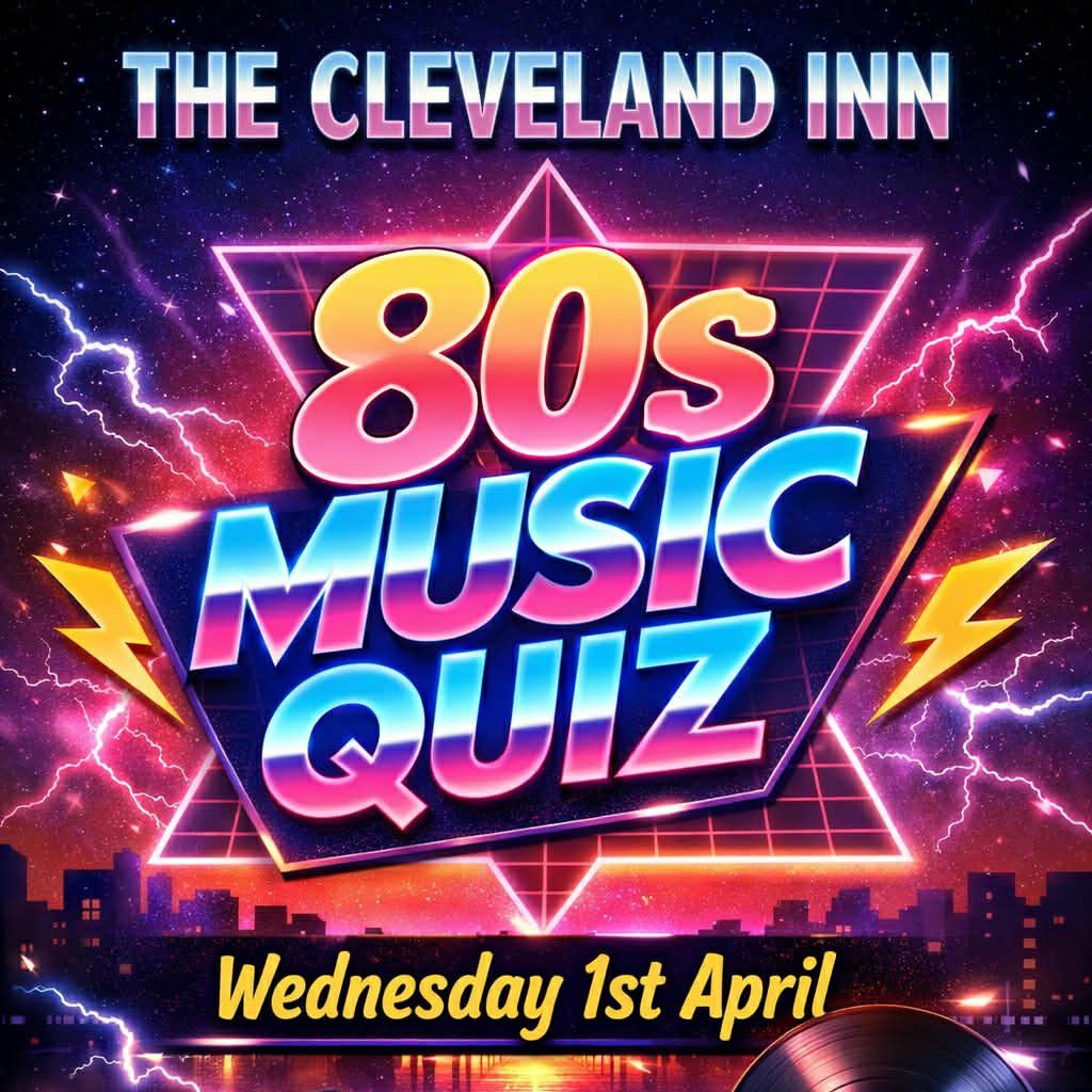 80s Music Quiz at The Cleveland Inn!Wednesday 1st April at 8pm.