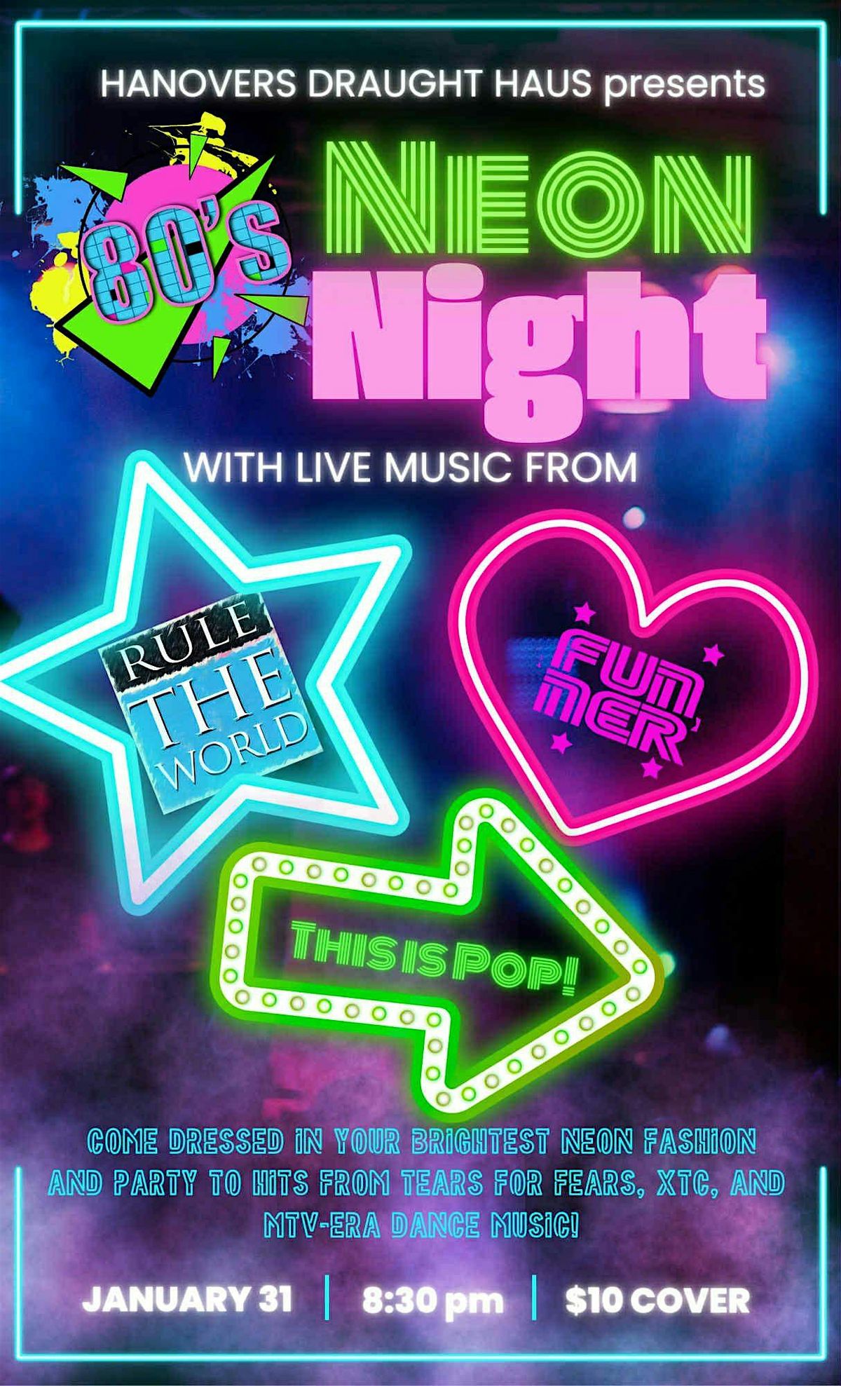 Step back in time and light up the night at a Neon 80s Live Music Concert Party in Pflugerville! Break out the leg warmers, tease your hair, and get ready to dance as live performers bring the biggest 80s hits to life with glowing lights, throwback style, and nonstop energy. From synth-driven anthems to iconic rock classics, this high-energy concert party is all about fun, nostalgia, and neon vibes. Grab your friends, dress to impress in your brightest 80s gear, and get ready for a totally rad night of live music, dancing, and unforgettable throwback fun.