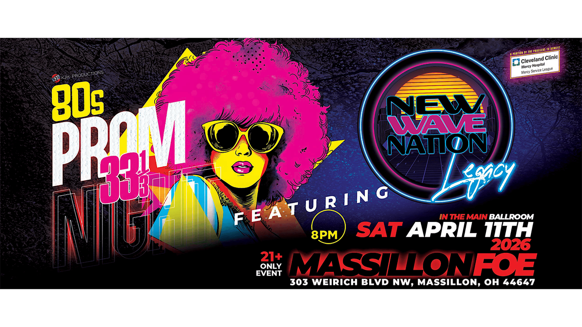 Following two years of sold-out success, our 3rd Annual 80s Prom is returning, and we’re moving to a massive new home for 2026: The Massillon Eagles Main Ballroom!