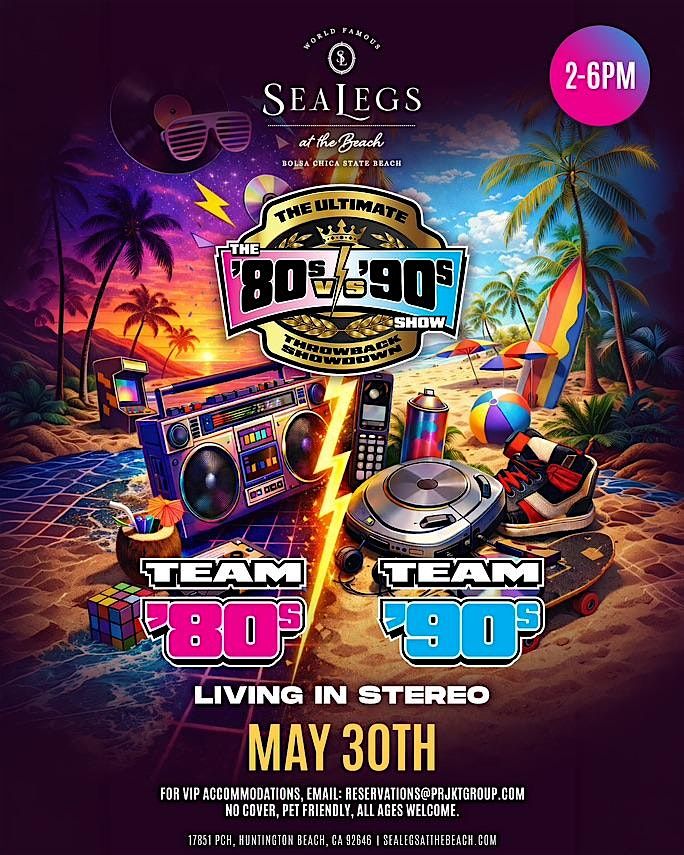 Come enjoy the 80s VS 90s Show at Sealegs at the beach at 2pm. All ages welcome. For VIP reservations email [email protected]