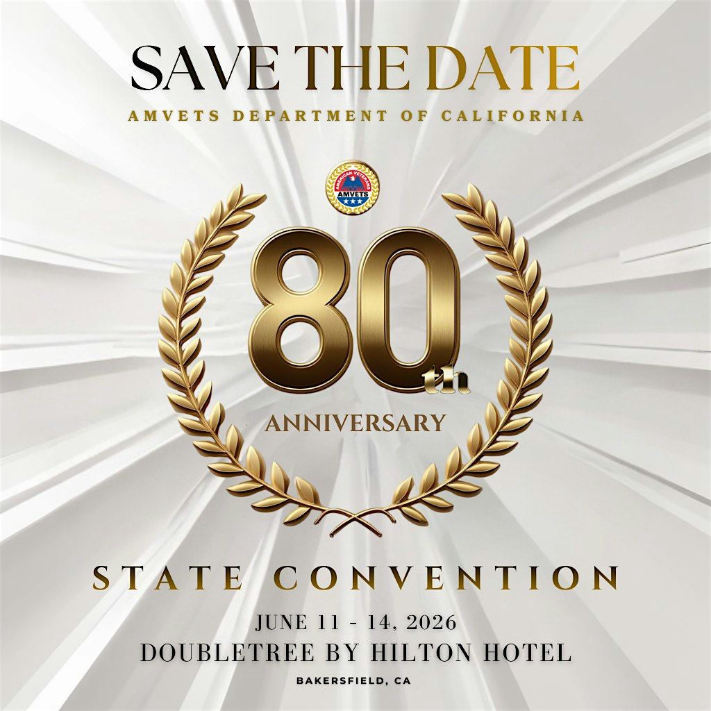 Join us for the AMVETS Department of California 80th Annual State Convention, a milestone gathering celebrating eight decades of service, advocacy, and commitment to veterans across the state.